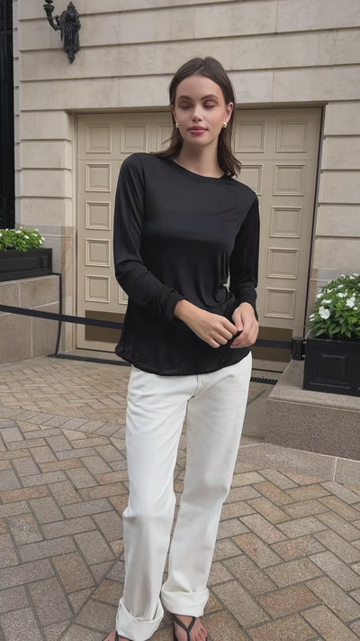 Ten damski sportowy top z długim rękawem łączy w sobie modny look i funkcjonalność. Doskonały na intensywny trening, jak i na co dzień – w połączeniu z legginsami czy jeansami stworzy nowoczesny miejski outfit.
