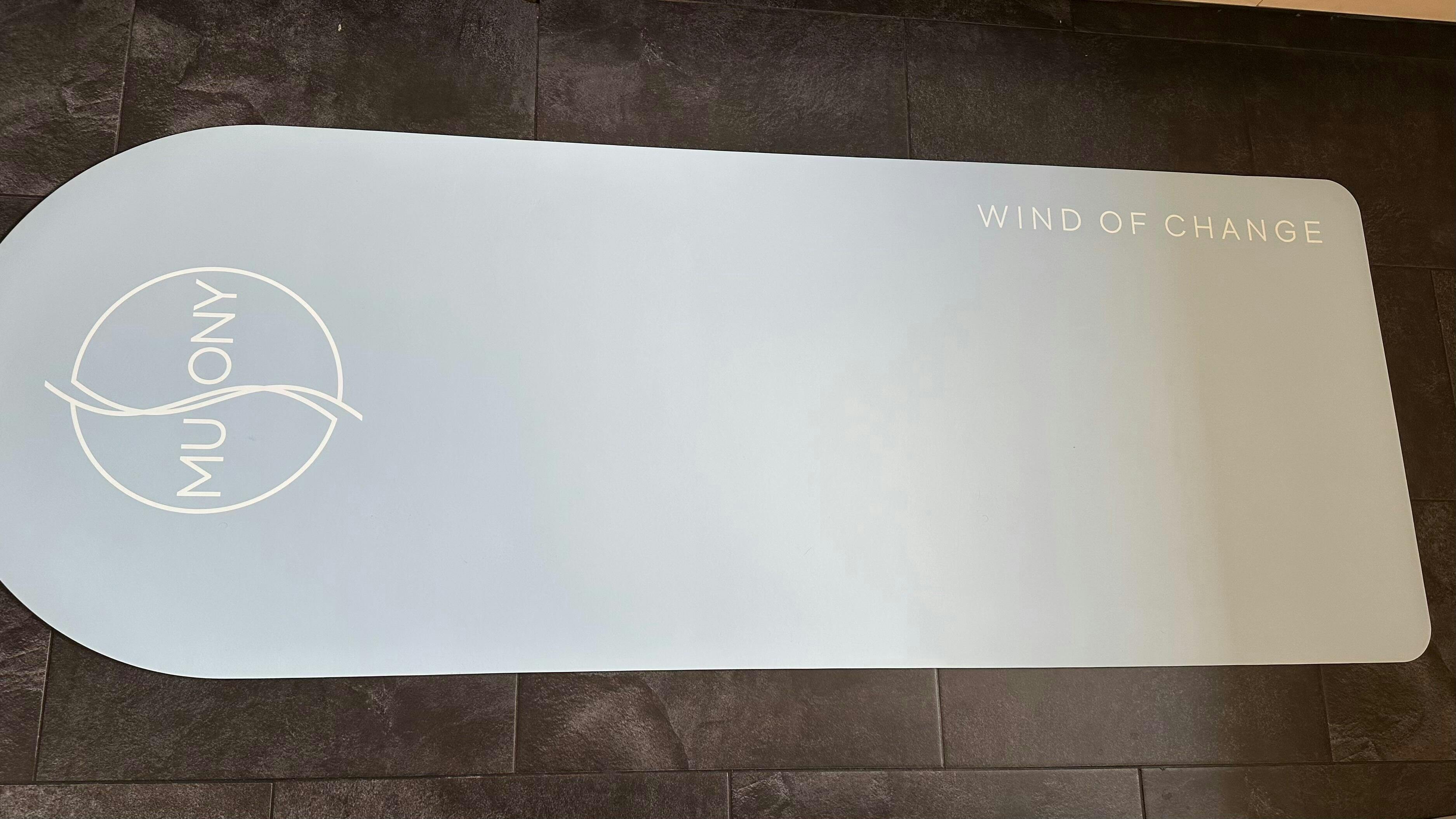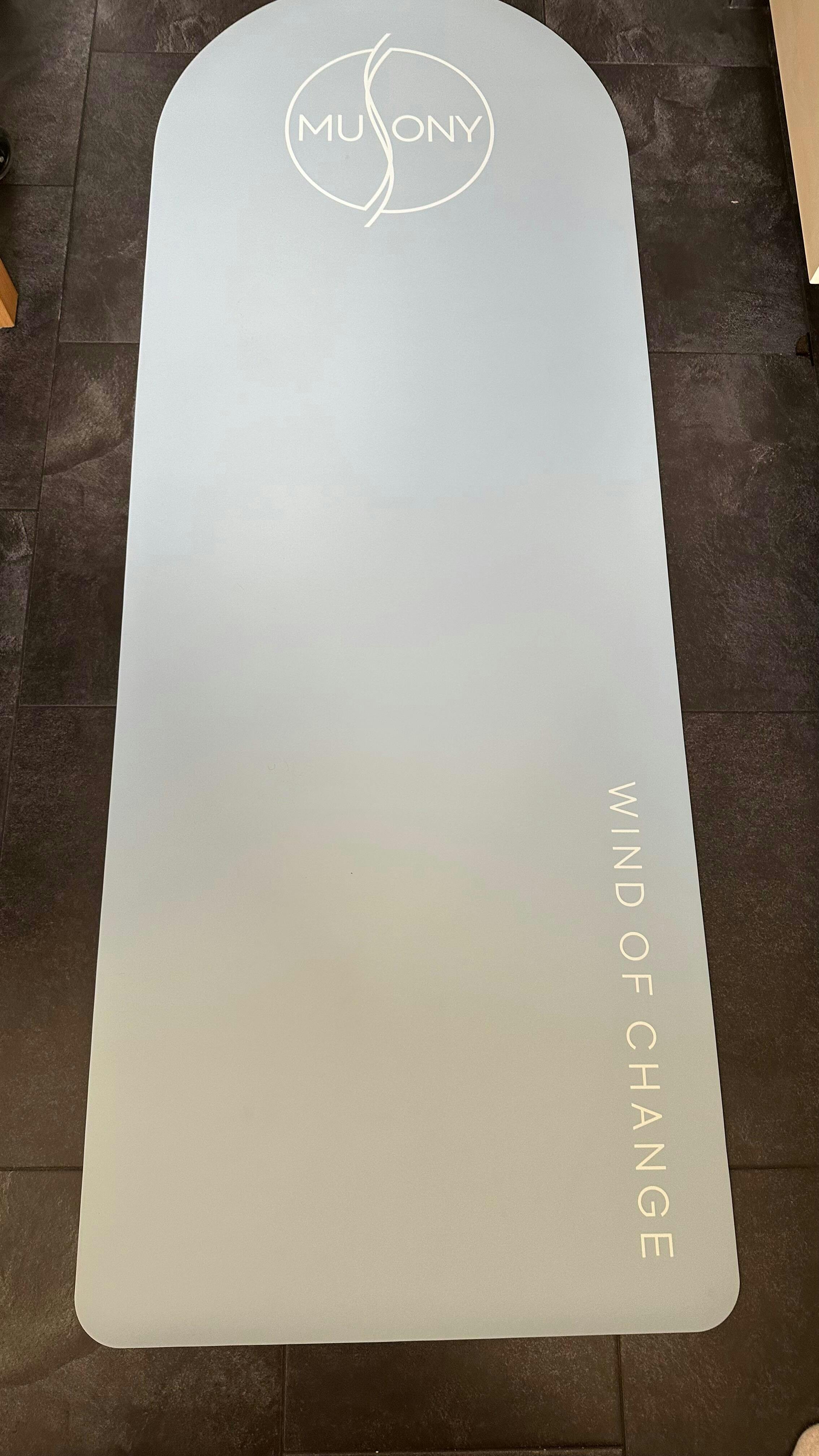 Unikatowy projekt „Wind of Change” z logo MUSONY nadaje macie nowoczesny, elegancki charakter. Subtelna, chłodna kolorystyka wprowadza spokój i harmonię, inspirując do głębszej praktyki i relaksu.